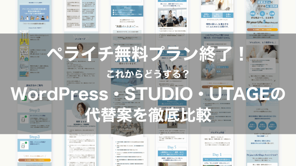 ペライチ無料プラン終了!これからどうする?WordPress・STUDIO・UTAGEの代替案を徹底比較